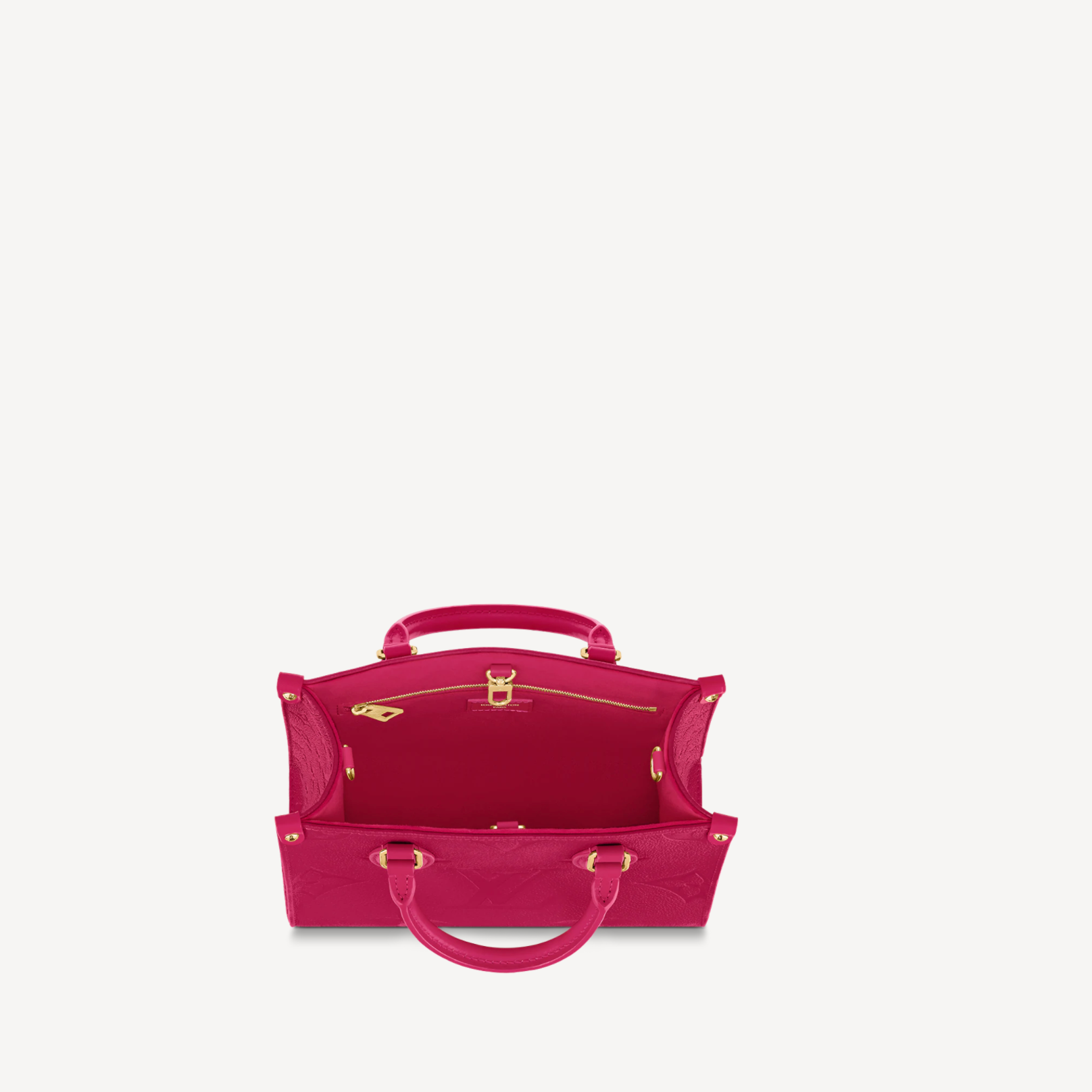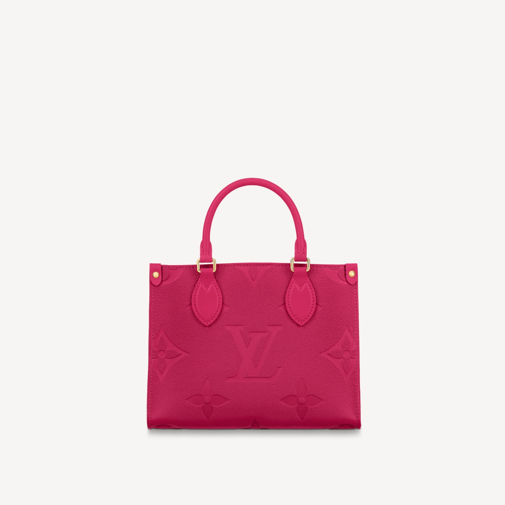 Fuchsia Embossed Grained Leather On-the-Go Tote Bag, PM Size van Louis Vuitton – een stijlvolle shopper met een tijdloze uitstraling.